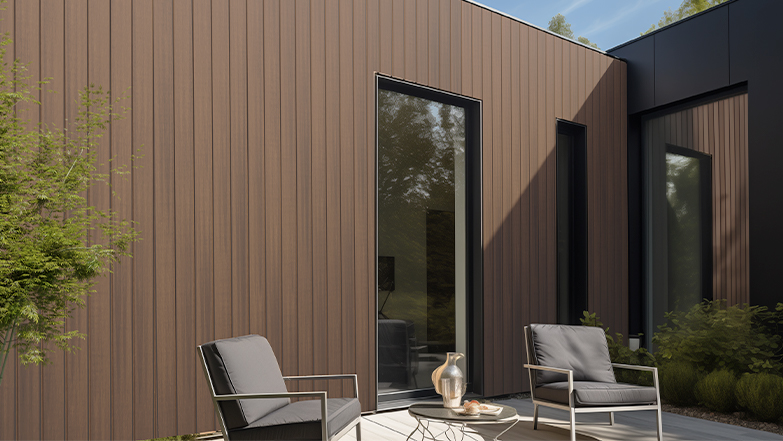 Deski elewacyjne WEO® Essential są odporne na plamy i blaknięcie promieni UV dzięki technologii współwytłaczania. Powłoka ochronna naniesiona na powierzchnię zapewnia doskonałe wykończenie desek.
